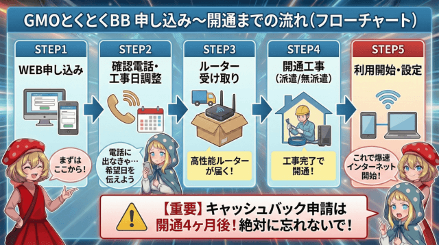 キャッシュバックを確実に受け取るため、以下の手順を必ず守ってください。