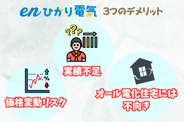 メリットの多いenひかり電気ですが、デメリットも正直にお伝えします。特に市場連動型の価格変動リスクについては、契約前にしっかり理解しておくことが重要です。