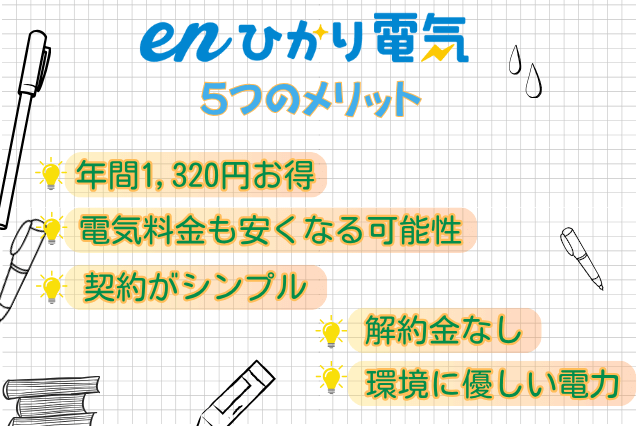 enひかりと電気を1社でまとめられるため、契約管理がシンプルになります。請求書も1枚にまとまるため、家計管理がしやすくなる点も見逃せないメリットです。