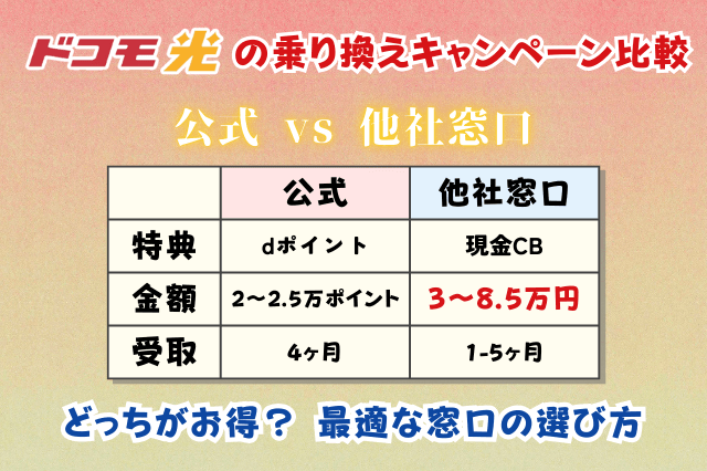 公式と代理店の乗り換えキャンペーン比較|結局どちらがお得?