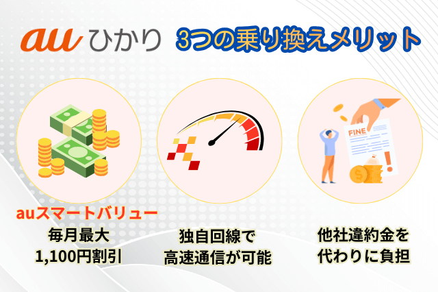 まずは、ドコモ光からauひかりへ乗り換えることで得られる主なメリットを3つ紹介します。