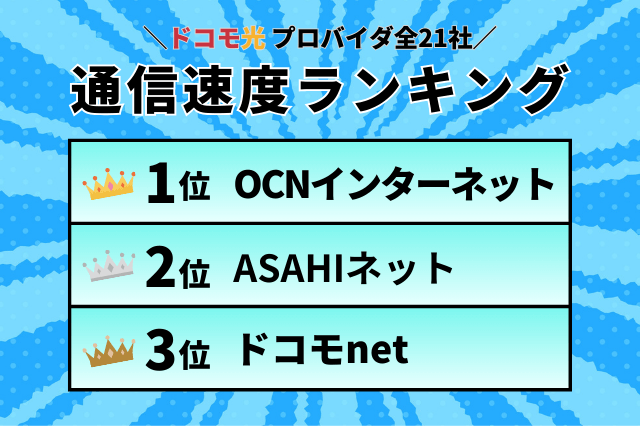 ドコモ光プロバイダ21社の通信速度ランキング一覧