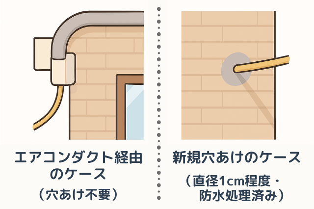 ただし、以下の場合は外壁に穴をあける工事が必要になることがあります: