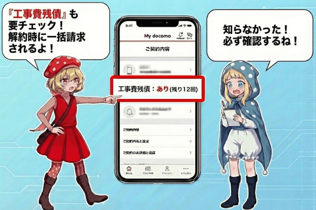 違約金以外にも工事費残債や光電話の解約費用が発生する可能性があるため、My docomoで総合的に確認してから判断することをおすすめします。