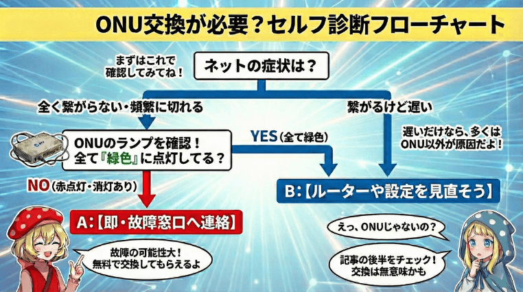 有料交換を検討する前に、まずは本当にONUが原因なのかを確認することが重要です。